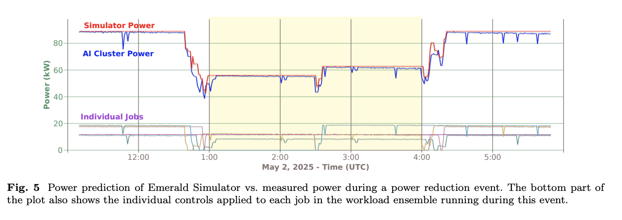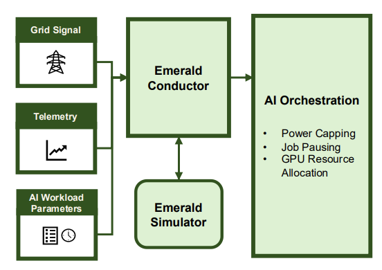 - Emerald simulator: predicts the power-performance behaviour of AI jobs. Recommends an orchestration strategy meet both AI SLAs and power grid response commitments.