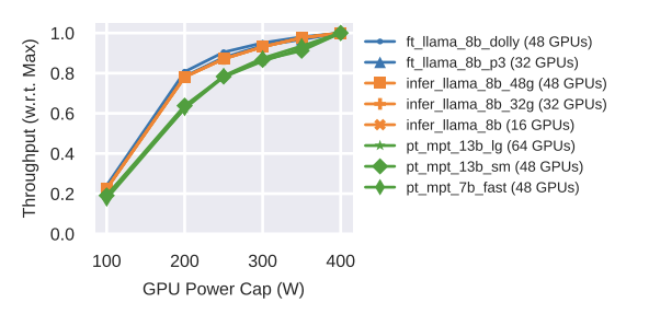- Nvidia power capping: dynamic voltage frequency scaling (DVFS) to reduce power. Probably the simplest action, requires no scheduling changes, checkpointing etc.