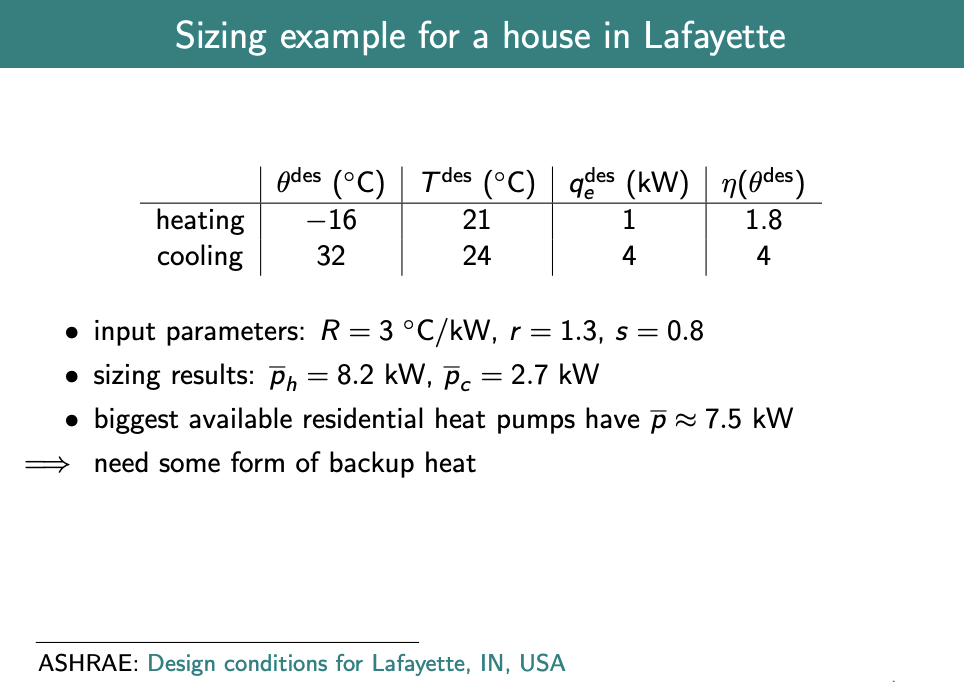- Can size the resultant system to either be large enough to serve the max of heating and cooling (but may then be quite large), or undersize for heating (which is typically the largest component) and then fall back to some form of backup heating, eg: resistive, heat storage, gas etc.
