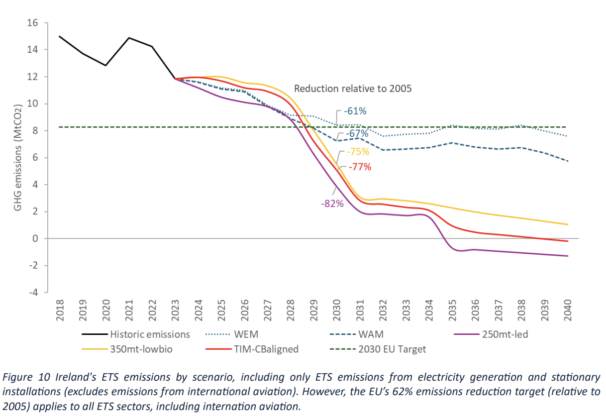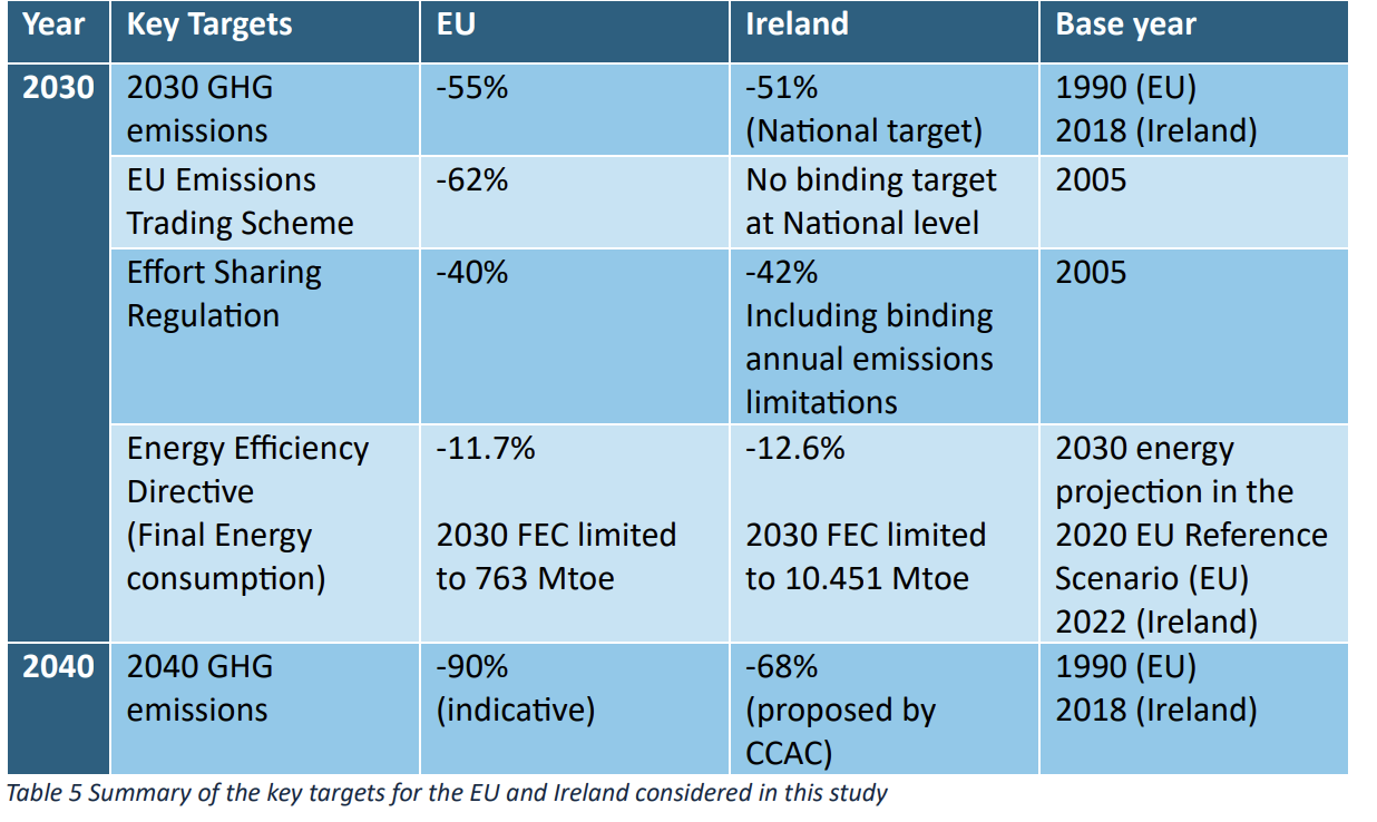 - Ireland’s target is a 42% relative to 2005 GHG reduction by 2030.