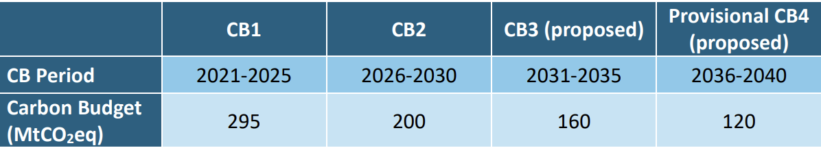 - CB1, CB2: carbon budgets from 2021-2025 and 2026-2030