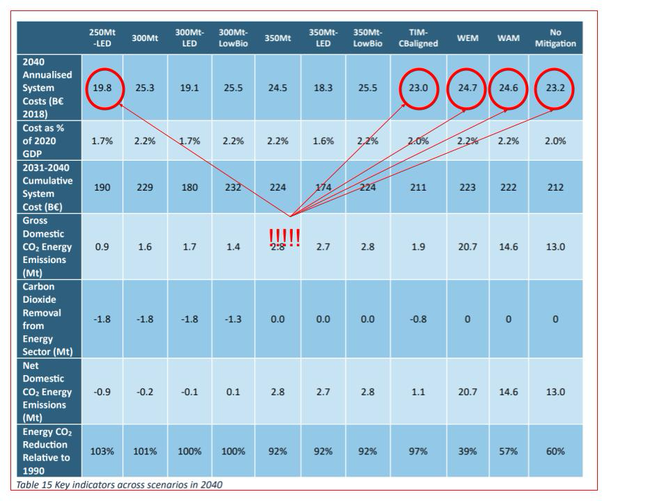 Under WEM Ireland will only reduce GHG emissions by 12% by 2040, and 33% under WAM. CCAC proposals target up to 68% but we’re already not meeting our existing carbon budgets so that doesn’t seem likely unless things change.