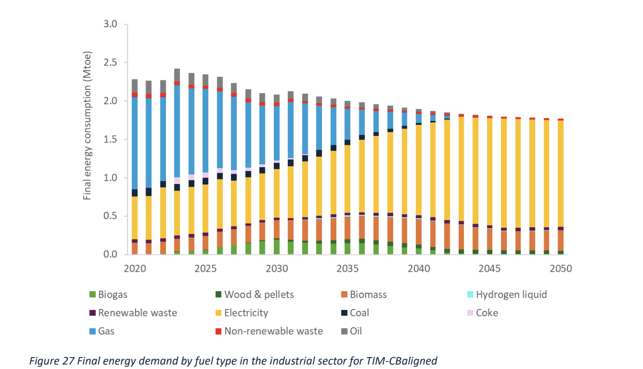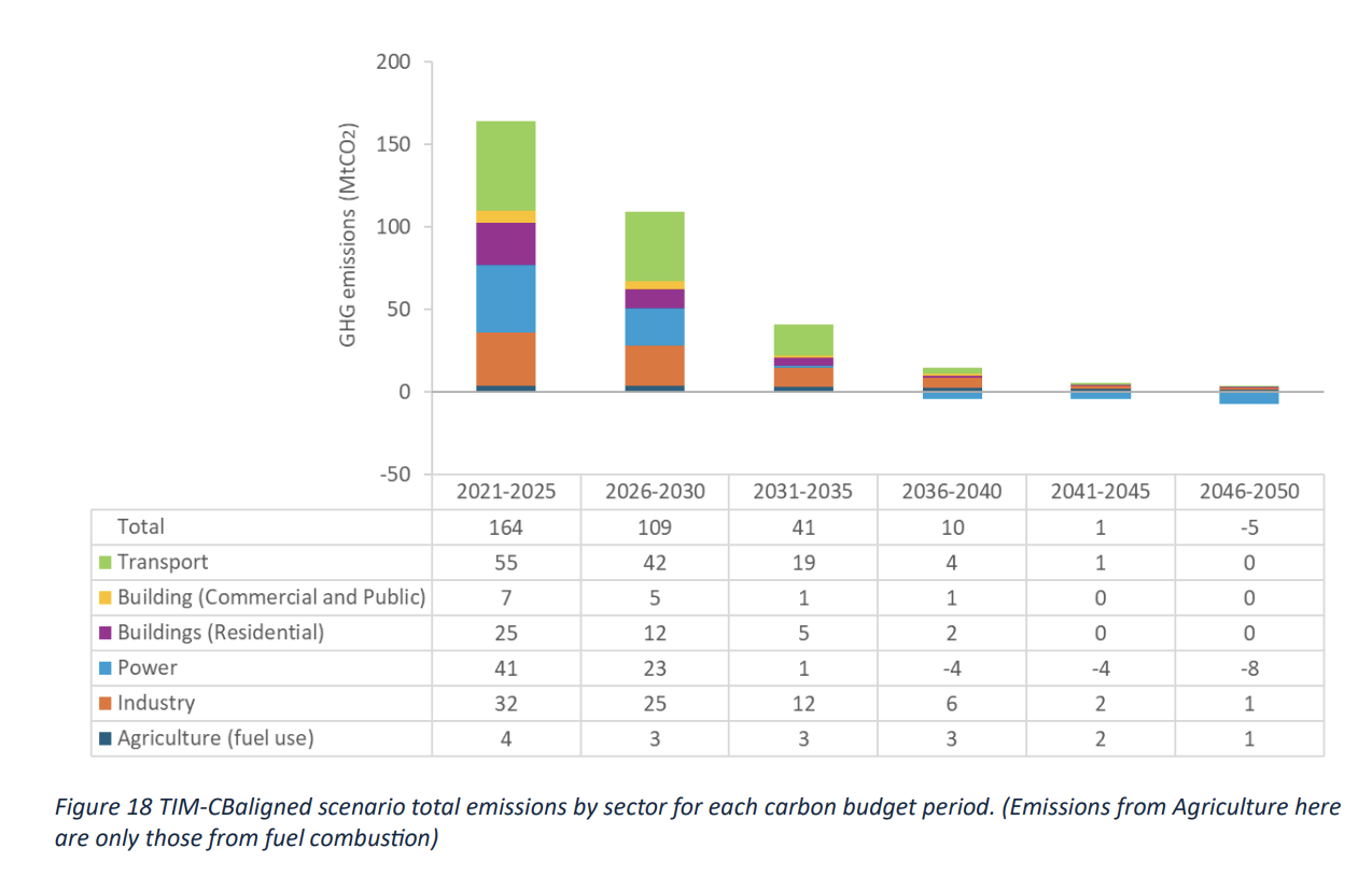 - TIM-CBaligned , A composite scenario averaging energy sectors and the scenarios used to inform the CCAC’s proposed third and fourth carbon budgets (2031–2040).