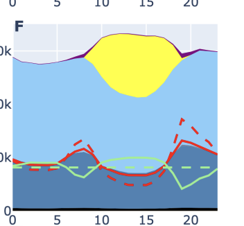 - Mid-day solar usage goes up, battery usage goes down, as “flexible load partially substitutes its role in balancing variability”