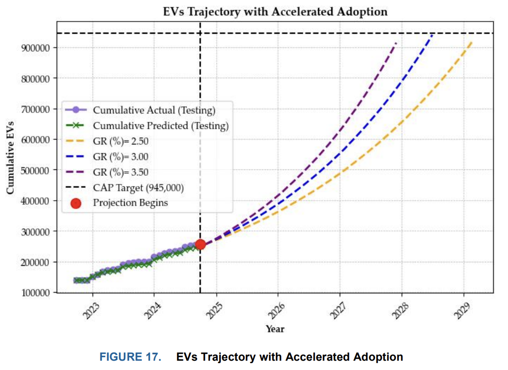 I think (and the author’s say as much) that it is policy, politics, economics and other societal factors that will determine if we hit our 945k EVs by 2030 goal and as such historical data is only of limited used.