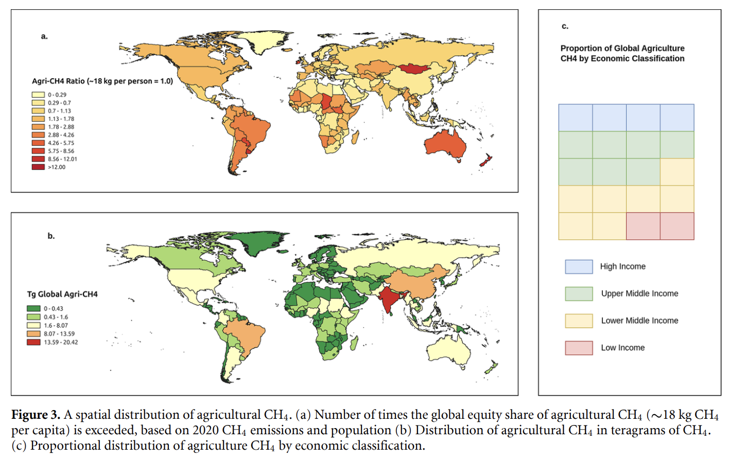 Abstract: This study critically examines the use of ‘no additional warming’ approaches, such as temperature neutrality (TN), to determine national climate policy on agricultural methane (CH4). The reduced-complexity climate model MAGICC was used to quantify future national warming contributions for Ireland (a country with high per-capita CH4 emissions driven by large-scale dairy and beef production) under a business-as-usual pathway and three alternative scenarios: (1) TN, (2) a split-gas emission target, or (3) net-zero greenhouse gas emissions by 2050. TN implicitly ‘grandfathers’ CH4 emissions, ‘rewarding’ modest emission reductions even when per capita warming remains high, thereby shifting the mitigation burden and constraining the developmental space for low-income, food-insecure countries. Weaker CH4 emission reduction ambition, i.e. use of TN at the national level, is often justified on the basis of protecting global food security, because it can avoid ‘emission leakage’ from countries that export livestock products with below-average GHG intensities. However, this study demonstrates such justifications have little merit given that global trade in animal-sourced foods largely benefits wealthy markets, and often relies on imported feed, contributing to indirect land use change. The study concludes that the TN approach is not a robust basis for fair and effective national climate policy, and risks a potentially costly underestimation of both long-term CH4 mitigation and carbon dioxide removal in the context of national planning for an equitable, sustainable, food secure future.
