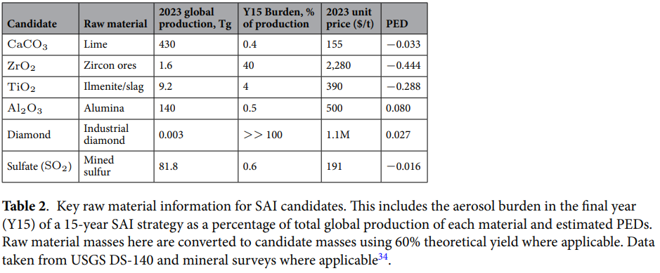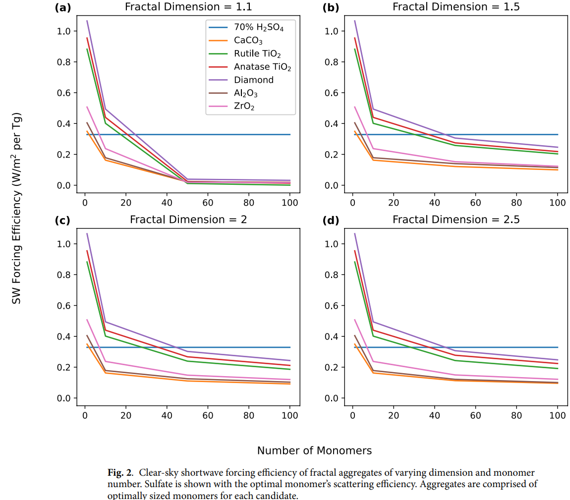 - Other aerosols considered: CaCO3, alpha alumina (Al2O3), TiO2, cubic zirconia (ZrO2), and diamond. But there has been minimal testing and modelling has not been sufficient.